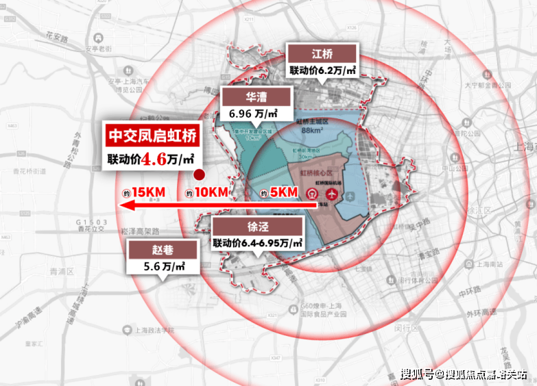 相比之下,中交·凤启虹桥均价仅约4.6万/㎡,总价仅约296万起,仅一站距离,价格就差了2万+/㎡,价格洼地性价比立显!